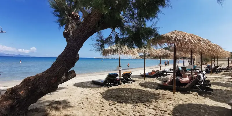 Alykanas Beach is a wide sandy beach with calm shallow water that makes it perfect for families and relaxed swimming. The beach has a peaceful atmosphere and is less crowded than the southern resorts.
