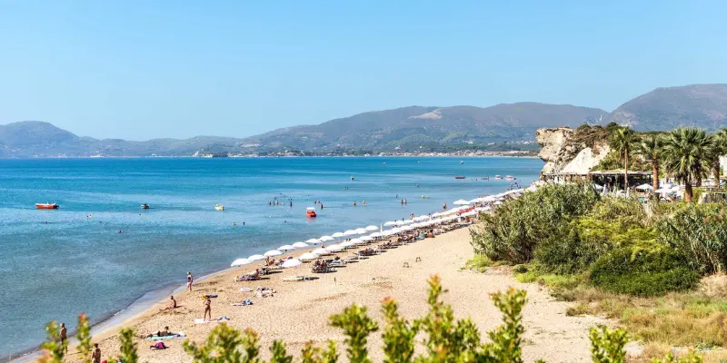 Nearby villages on the west coast offer small guesthouses and apartments. Zakynthos Town is also a practical base.
